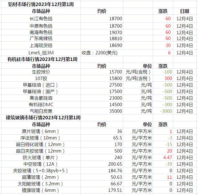 此原材料價格由中國幕墻網(wǎng)收集整理,僅供參考!