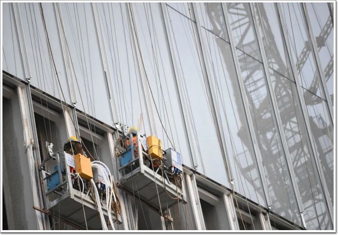 直紋扭面陶板幕墻系統中,最關鍵的板面材料是由大量:2000mmX500mm的陶板構成,在地面完成組裝,將陶板面板、鋁合金插芯型材、鋁合金掛件、防墜鋼絲繩,固定螺栓等實現完整的單元組合后,整體吊裝上墻。