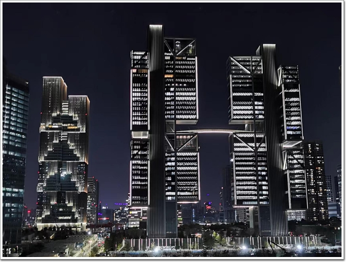 夜晚,更加美輪美奐的大疆天空之城大廈