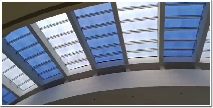 整個建筑外表皮立面全部選用了——陽極氧化蜂窩鋁板(詞條“蜂窩鋁板”由行業大百科提供);而采光頂則是由“精一新材料”生產的LV納米光閥電致變色膜,并在“耀皮”工廠完成了中空玻璃的加工合片。