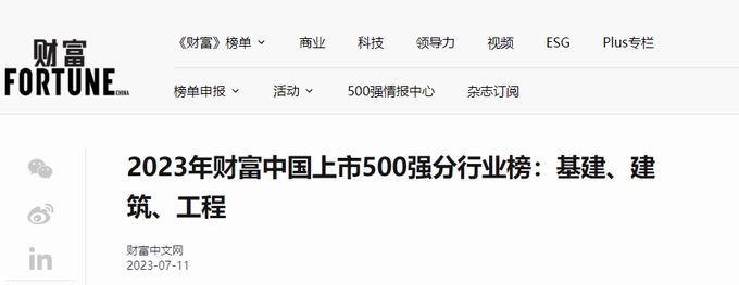 2023年7月11日,2023年《財(cái)富》中國上市500強(qiáng)排行榜公布,該榜單考量了全球范圍內(nèi)最大的中國上市企業(yè)在過去一年的業(yè)績和成就,其中基建、建筑行業(yè)共26家企業(yè)上榜。