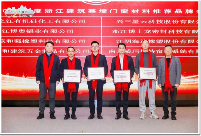中國幕墻網總編雷鳴先生、廈門市勘察設計協會鋼結構與幕墻分會趙志剛會長為“2022-2023浙江省建筑幕墻門窗材料推薦品牌企業”頒發榮譽。
