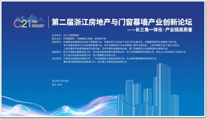 2023年是長三角一體化戰略上升為國家戰略的第五年,12月22日浙江門窗幕墻網聯合行業權威媒體:中國幕墻網、中國幕墻工程網、新浪地產網,緊扣時代的脈搏和行業的前沿主題,共同舉辦C21峰會丨第二屆浙江房地產與門窗幕墻產業創新論壇。