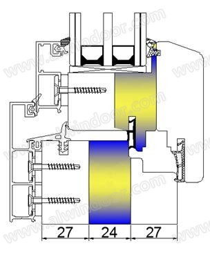 目前國內大部分的鋁包木門窗生產企業,一般生產IV78、IV68或者IV58系列,此三系列木型材中木材厚度分別為78毫米、68毫米和58毫米,在不采取其它技術措施的情況下,即使采用保溫系數低的樟子松或者紅松,保溫系數Uf值在木材厚度78毫米的情況下為1.31W/㎡·K,仍然無法滿足被動式門窗的設計要求。