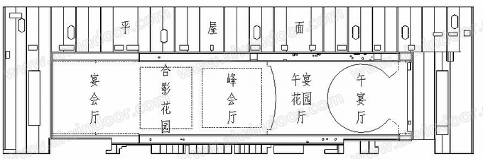 本項(xiàng)目屋面面積達(dá)7萬多平米,設(shè)計(jì)從建筑功能和自然條件出發(fā),充分考慮其防水性能特點(diǎn)和要求,利用各種新技術(shù)、新材料、新方法、新工藝創(chuàng)造了優(yōu)越的防水功能。整個(gè)屋面防水分區(qū)主要分為平屋面系統(tǒng)和拱形屋面系統(tǒng),拱屋面還分為金屬拱屋面(宴會(huì)廳及峰會(huì)廳)和玻璃采光頂拱屋面(合影區(qū)及午宴區(qū))兩大部分,如下圖所示: