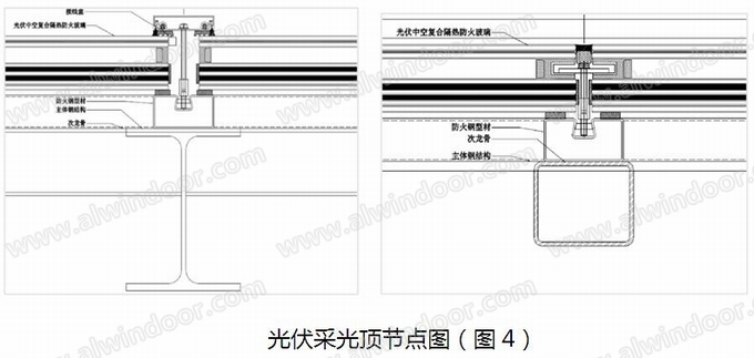 玻璃采光頂是建筑的組成部分,隨著建筑物跨度越來(lái)越大,通過(guò)建筑幕墻、門(mén)窗已不能滿(mǎn)足建筑物室內(nèi)采光的需要,需要在大跨度屋面設(shè)置玻璃采光頂進(jìn)行室內(nèi)采光。光伏玻璃組件與采光頂結(jié)合進(jìn)行創(chuàng)新設(shè)計(jì),可以讓綠建設(shè)計(jì)融入建設(shè)全過(guò)程。結(jié)構(gòu)上采用橫隱豎明半隱框設(shè)計(jì),對(duì)于有防火要求的需滿(mǎn)足建筑屋面防火要求。對(duì)于無(wú)防火要求的光伏采光頂,可采用點(diǎn)支式玻璃采光頂及鋁合金(詞條“鋁合金”由行業(yè)大百科提供)框架式玻璃采光頂。