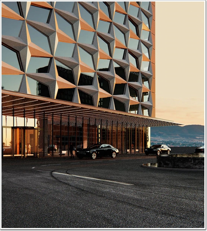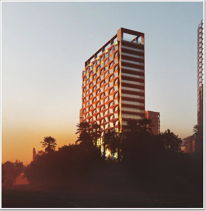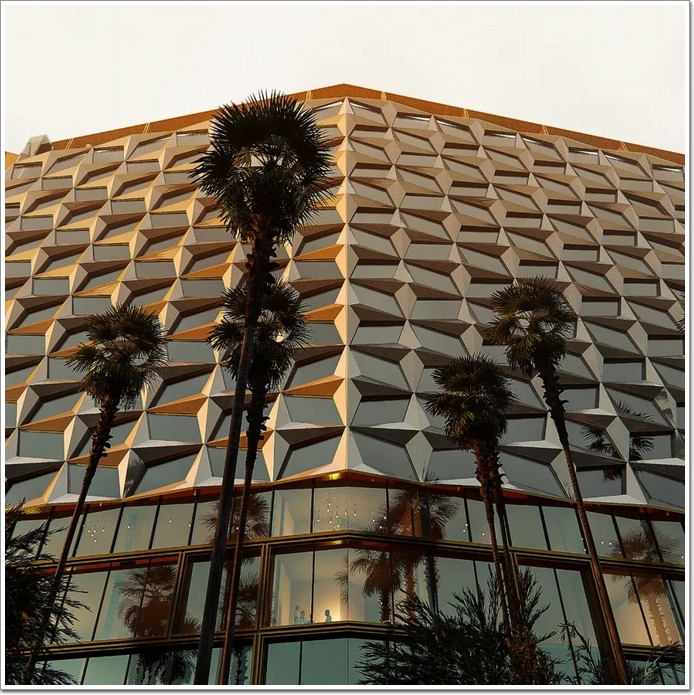 洛杉磯環球影城希爾頓酒店擴建—— 位于山谷與都市之間,來自中國的“朱培棟-line+建筑事務所",率領其團隊負責酒店的更新擴建工作。設計從洛杉磯市花“鶴望蘭”的開放與閉合的動態中獲得靈感,通過一個標準單元式框架的四向變化,形成動態的網格立面(grid facade),從而回應一天中的不同氣候狀況,以此帶給旅客意外的驚喜——動態變化的酒店外觀和客房內視野。