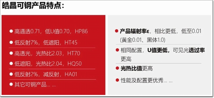 HP86該膜層相比一般的LOW-E鍍膜玻璃產品,有以下性能特點: