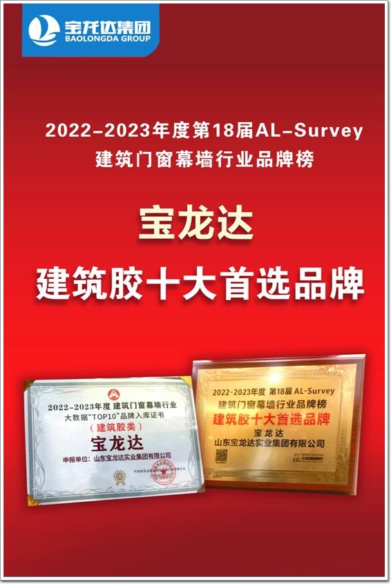中國幕墻網組織舉辦的“第十八屆AL-Survey行業讀者調查活動暨2023年門窗幕墻品牌榜”評選中, 寶龍達載譽而歸,獲得“建筑膠十大首選品牌”!
