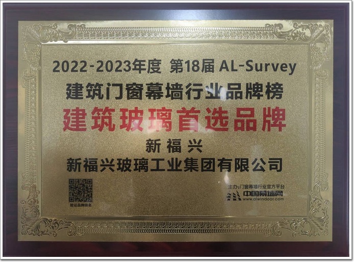 新福興玻璃工業集團發展至今四十余年,打造出垂直一體的產業布局,尤其在先進制造、人工智能、新材料、新能源等重點領域的突破創新,實現全產業鏈人才、技術和市場的高效整合,成為行業極具核心競爭力的優秀新能源集團企業代表。多年的穩鍵經營、優質產品打造及良好的市場口碑最終贏得廣大終端客戶、行業專家、房地產企業、設計院、顧問公司和媒體總編的一致認可,在第18屆AL-Survey2022-2023中國門窗幕墻行業大型讀者調查評選活動中,蟬聯 “建筑玻璃首選品牌”大獎!