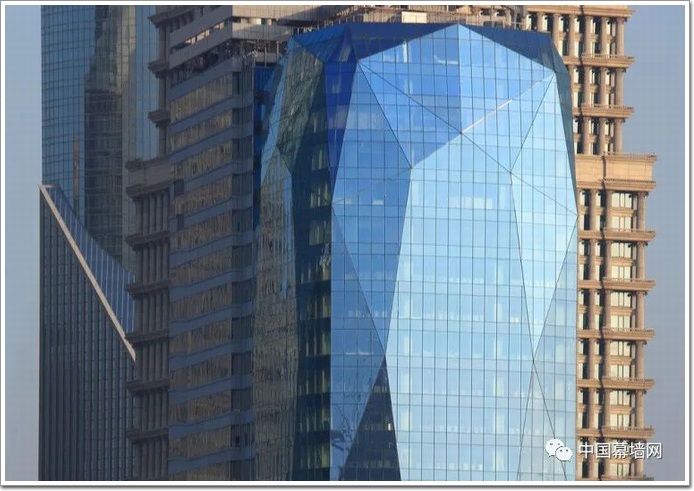 最后,中國幕墻網ALwindoor.com來聊一下大樓真實身份:“安慕希大樓”實際上叫:中國金融信息大廈。作為國家重點項目,位于浦東陸家嘴金融貿易區,建筑立體外形為寶石狀,由于基礎為超深基坑,再加上面對寶石面幕墻精準定位……當年由“武漢凌云”完成的幕墻施工,可以說是高難度的。