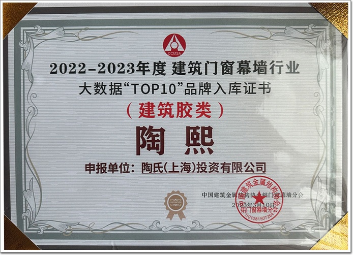 陶氏(上海)投資有限公司旗下的——陶熙DOWSIL品牌,憑借創新力、創造力、市場數據、發展潛力等綜合評定,成功衛冕2023年度第十八屆AL-SURVEY門窗幕墻行業大型讀者調查活動“建筑膠(詞條“建筑膠”由行業大百科提供)十大首選品牌”和“大數據TOP10品牌入庫證書”!