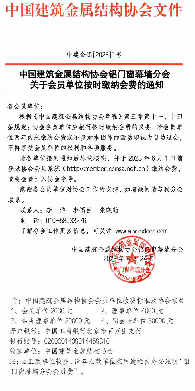 附:中國(guó)建筑金屬結(jié)構(gòu)協(xié)會(huì)會(huì)員單位收費(fèi)標(biāo)準(zhǔn)及協(xié)會(huì)帳號(hào)