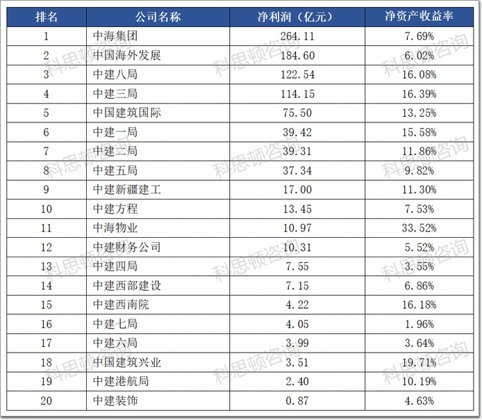2022年中國建筑主要子公司凈資產(chǎn)收益率TOP10: