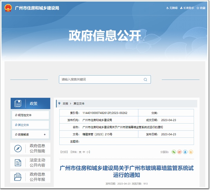 為了加強(qiáng)我市既有建筑玻璃幕墻安全管理,根據(jù)《廣州市建筑玻璃幕墻管理辦法》(市政府令第148號(hào)),我局開發(fā)了廣州市玻璃幕墻監(jiān)管系統(tǒng)。現(xiàn)就試運(yùn)行事項(xiàng)通知如下: