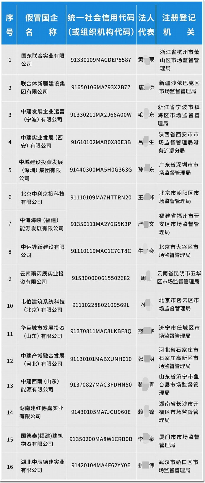 近期,有部分不法分子通過偽造公章等方式,將企業注冊為我集團下屬子公司,以我集團下屬子公司名義開展業務,部分公司甚至從事詐騙、非法集資等違法犯罪行為。經我集團核實,下表所列公司及其下設各級子公司均為假冒國企,與我集團無任何隸屬與股權關系,也不存在任何投資、合作、業務等關系,其一切行為均與我集團無關。請廣大社會公眾提高警惕,注意防范風險,如發現其違法犯罪行為,請盡快到公安機關報案。