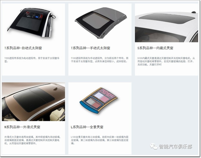 公司汽車天窗玻璃產品 圖源官網