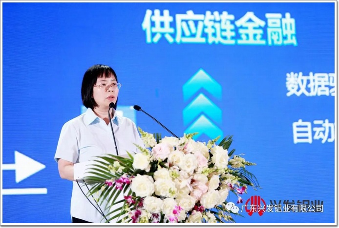 對企業來說,資金是企業的血脈,更是生命源泉!為了助力興發鋁業與所有合作伙伴共生共融,協同發展,年會上,興發鋁業集團財務管理部部長羅瑞燕給大家帶來《鏈動興企,共贏發展》——興發鋁業供應鏈融資的主題分享。羅部長指出“近三年,興發鋁業依托自身的信用優勢,通過核心企業的信譽,幫助上下游企業獲得了更多的資金支持,切實為合作企業提高了流動性,實現企業的可持續發展!蓖瑫r羅部長表示通過供應鏈金融能提升雙方的競爭力,通過鏈動,實現共贏發展。