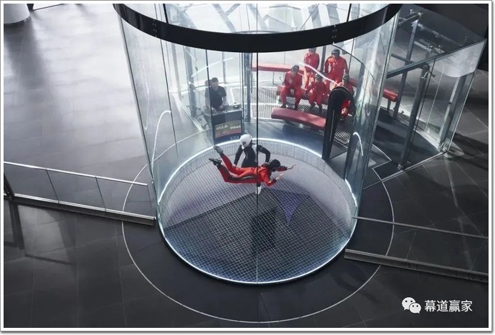 人們飛翔在玻璃風(fēng)洞上,除了高空驚險(xiǎn)刺激感外,還有一種暢游云端飄渺感。原來生活中的高空飛翔娛樂,可以通過室內(nèi)玻璃風(fēng)洞輕易感受,有種"極限跳傘"的巨大成功。