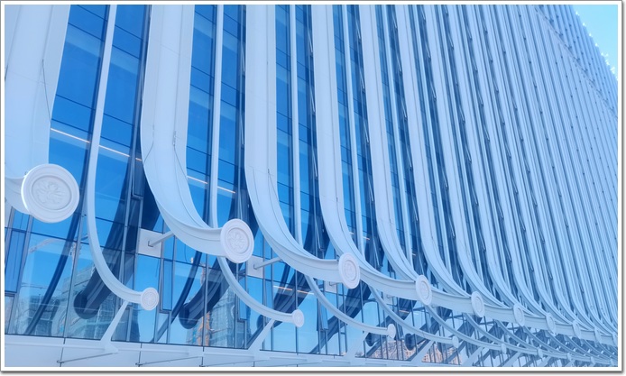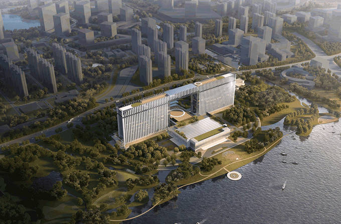 上有天堂 下有蘇杭︱蘇州之美在于古典與傳承,蘇州陽澄湖錦江國際大酒店,由蘇州柯利達裝飾股份有限公司負責的幕墻承建部分,塔樓通過變化的外掛飛翼穿孔鋁板,形成一個快速動車形狀,幕墻外立面創意源于臨近的“京滬高鐵”。