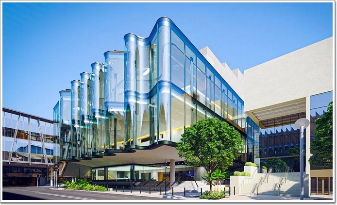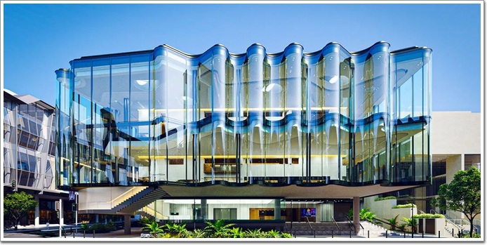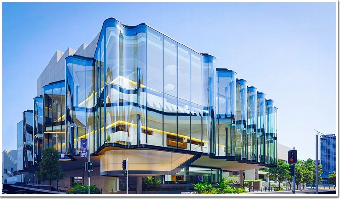 澳大利亞布里斯班新劇院的設計靈感來自蜿蜒的布里斯班河以及河岸立面的形狀及紋理。北玻打造的曲率大小不一的弧形玻璃連成一片與布里斯班河相呼應,營造出一個極具視覺沖擊的現代建筑。
