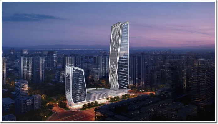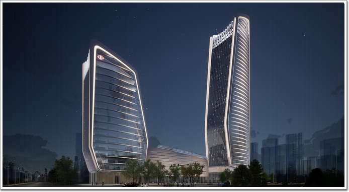 在總體布局上,項目以主副雙塔的組合設計提升城市群落空間整體感,延續城市南偏東的城市肌理,在保證建筑高度曲線的流暢性及連續性的同時,退讓出入口廣場,進而保持建筑和城市空間界面適度的開與合。