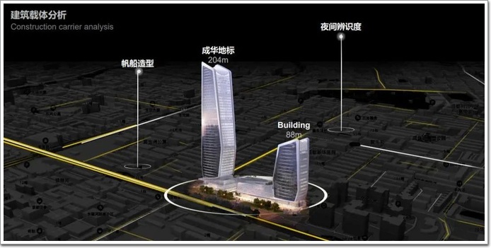 為什么說它今后將成為地標建筑呢?首先,因為建筑身披華麗的玻璃幕墻,以其最高點204米的高度,今后所在來成都的朋友遠遠地就能望見“它”。其次,建筑以海上風帆為設計靈感,建成后將為“夜成都”注入新的活力。
