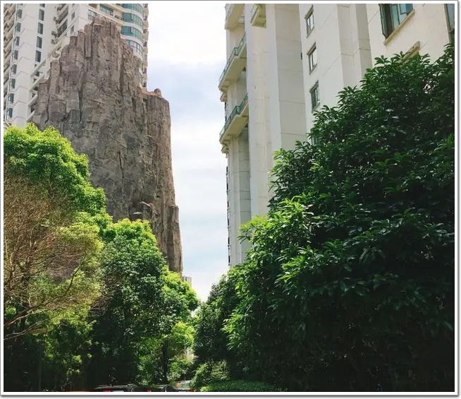 雖然這座“假山”飽受爭議,但我們依舊不能忽視它的存在。“長壽路上一座山=壽比南山”,怪異中蘊藏美好,這是對它的最高評價了吧?!