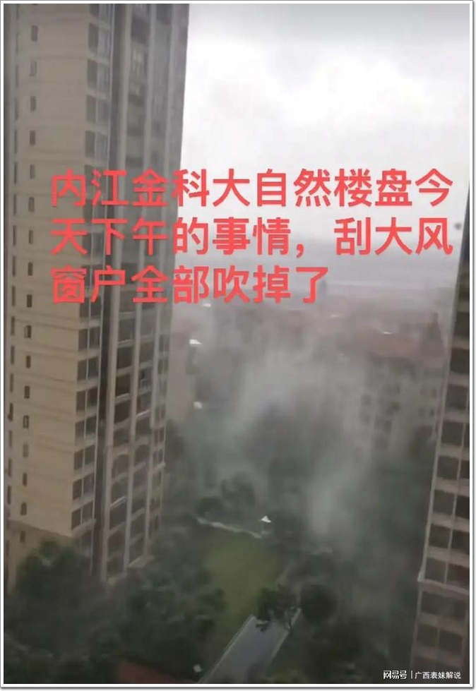 2023年7月17日,網(wǎng)傳:四川內(nèi)江市市中區(qū)大自然金科中央公園城高層住宅的門窗玻璃被風(fēng)刮落。截至發(fā)稿前中國(guó)幕墻網(wǎng)ALwindoor.com收到的消息:所幸無(wú)人員傷亡……