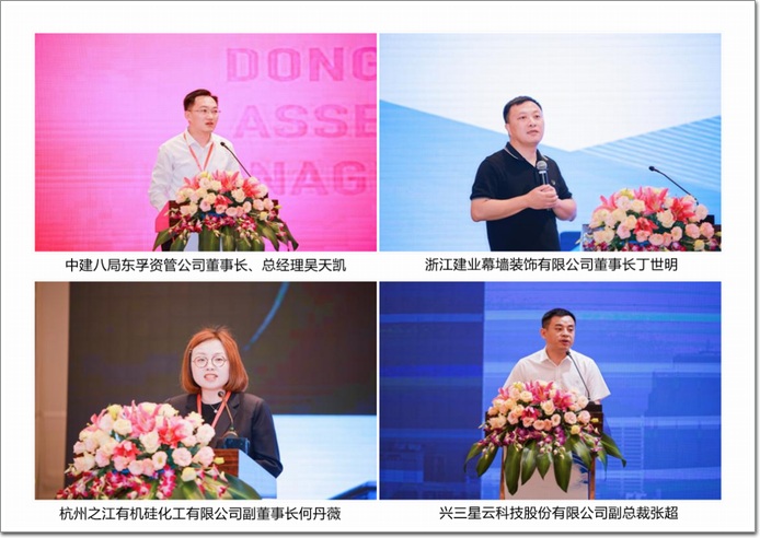 論壇主題分享環(huán)節(jié),中建八局東孚資管公司董事長、總經(jīng)理吳天凱發(fā)表了《落實國家政策,聚焦租賃住房》主題分享;浙江建業(yè)幕墻裝飾有限公司董事長丁世明圍繞“以人為本 科技創(chuàng)新”發(fā)表了《回歸》主題分享;杭州之江有機硅化工有限公司副董事長何丹薇發(fā)表了《守正創(chuàng)新 順勢而為》主題分享;興三星云科技股份有限公司副總裁張超發(fā)表《從靈江時代走向錢塘江時代-興三星創(chuàng)新發(fā)展之路》的主題分享。