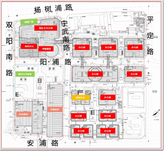項目位于上海市楊浦區大橋街道,毗鄰黃浦江,由商業、辦公、文化租賃住房及1個保護性歷史建筑,1個區文物保護點組成,將打造成以B站總部為核心的全方位沉浸式綜合演藝中心和數字娛樂文化產業經濟中心。還將創造頂級的數字娛樂文化主題IP潮流,營造線上線下互動娛樂的多元潮流文化樂園。