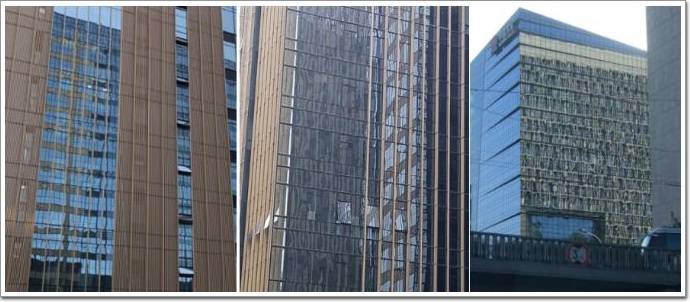 玻璃外觀平整度對(duì)幕墻整體外觀效果影響極大,平整度好的玻璃幕墻給人以高檔、莊重感,就像人穿了件挺括體面的高檔服裝,平整度差的玻璃幕墻則像人穿了件有很多褶皺的衣服。