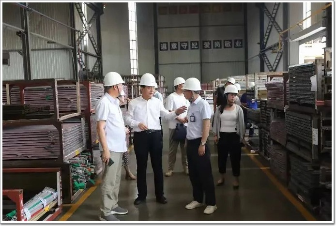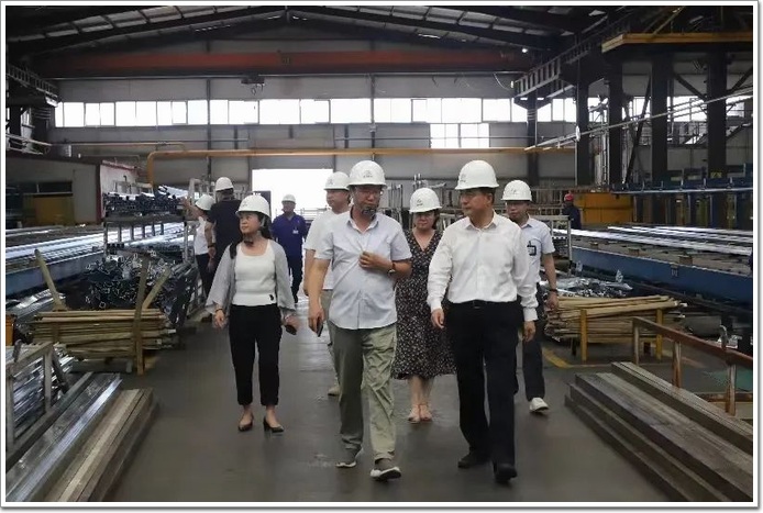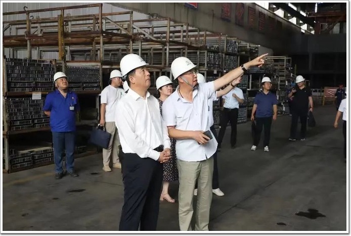 2023年8月14日下午,蘭州市副市長成少平率領(lǐng)蘭州市工信局副局長張建梅、七里河區(qū)副區(qū)長李琦、七里河區(qū)工信局長王晟翔等相關(guān)領(lǐng)導(dǎo)到七里河區(qū)重點(diǎn)工業(yè)企業(yè)蘭州銘帝八里窯廠區(qū)調(diào)研指導(dǎo)工作,銘帝鋁業(yè)集團(tuán)公司總裁鄧春輝及蘭州銘帝公司總經(jīng)理白冰陪同調(diào)研。