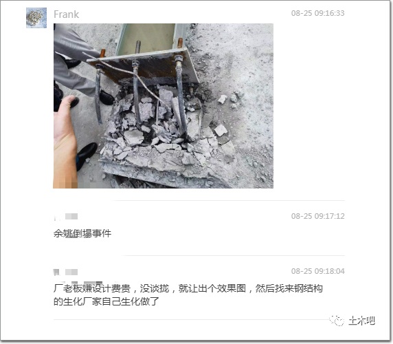 看看下面照片中的這柱腳連個(gè)加勁板都沒有!錨栓的錨固長度也不滿足規(guī)范要求。