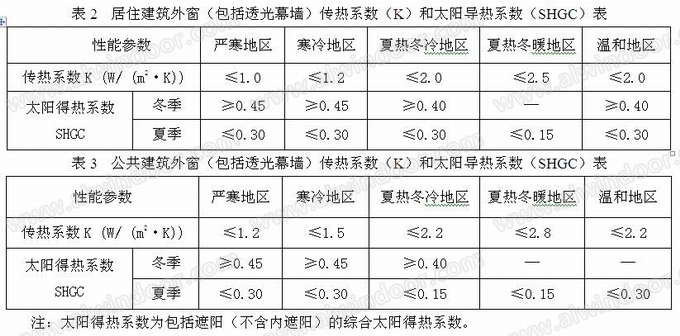 (2)居住建筑外窗(包括透光幕墻)及公共建筑外窗(包括透光幕墻)熱工性能參數分別見表2和表3。