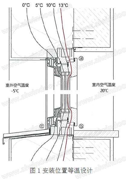 門窗的等溫設計應與建筑物整體等溫設計保持一致性,即保持等溫線的連續性,如圖1所示,避免安裝節點構造產生熱橋。