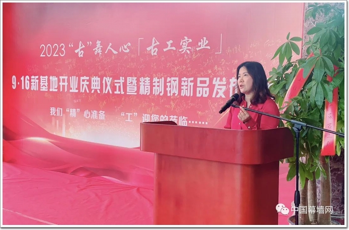 ‘工’迎四方高朋!在廣東省佛山市三水區苞蘆鎮苞蘆工業園C區8-1號的“古工實業”新基地儀式現場——董事長兼總經理李靚女士,攜手房地產、建筑業及門窗幕墻領域的各界嘉賓,共同出席慶典活動。