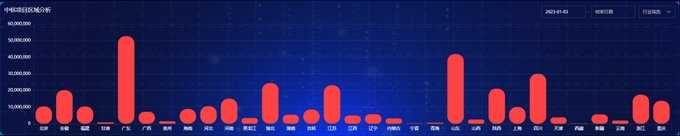 除過重大項目,根據隧唐科技基建通經營管理 AI 云平臺上的中國建筑集團 2023 年全量中標數據清單來看,訂單分布情況如下圖所示,廣東省以超 5270 億元的中標額排區域首位;山東、四川兩省隨其后,分別約有 4200 億和 3000 億元的項目被中建集團收入囊中;湖北、江蘇、陜西、安徽、浙江、河南、重慶等省份的中標總額也名列前茅。