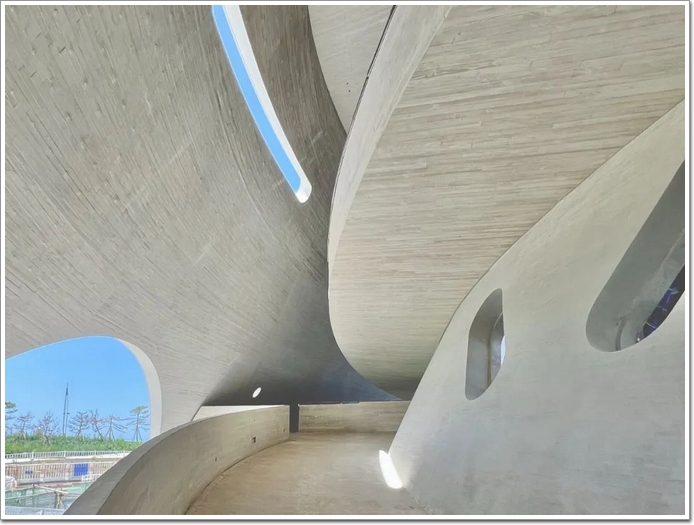 時光塔是一個與自然共呼吸的建筑,很多空間夏季不使用空調,讓人感知四季的更迭、自然氣息的流動,以及戶外、半戶外和室內空間帶給人的豐富變化,從一定程度上激活被過度舒適的現代生活鈍化了的知覺。在貝殼般光滑內殼包圍下的室外劇場,有著奇妙的聲學效果。