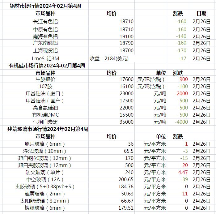此原材料價格由中國幕墻網收集整理,僅供參考!