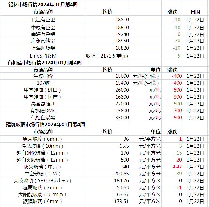 此原材料價格由中國幕墻網收集整理,僅供參考!