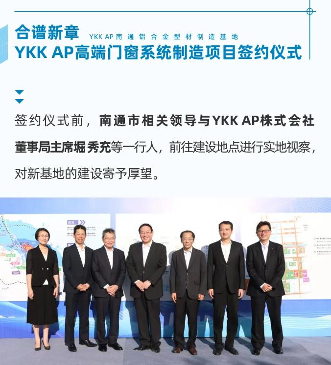項目投資總額達3.95億元人民幣(約合79億日元),預計將在2025年5月正式開工建設,建筑總面積約7.8萬平方米。工廠預計年生產能力為2.92萬噸鋁擠壓型材。南通市交通便利,接近上海市的銷售中心和蘇州市的制造基地,吸引了眾多日資企業的進駐。YKK AP自1999年起在中國開展業務,目前在中國擁有3個制造基地和11個銷售點。