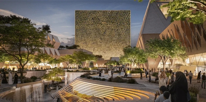 「The Mukaab」外立面由無數個重疊交織的三角形圖紋重復構成,該立面受到現代納吉迪建筑風格的啟發,極具未來科幻感。