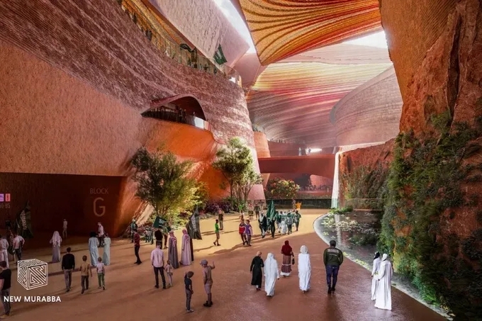 新穆拉巴(New Murabba)是沙特城市利雅得正在建設中的新城市中心,在這里,正在建設中的名為穆卡布(The Mukaab)的大型建筑,是一座足夠容納20座帝國大廈的立方體形狀摩天大樓,高400m、寬400m、長400m,項目整體覆蓋約19k㎡的場地。