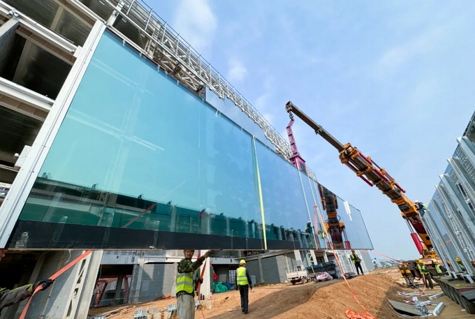 產(chǎn)業(yè)園研發(fā)中心大樓幕墻安裝結(jié)束后呈現(xiàn)給大家,等待“圈粉”來自世界各地的客戶。