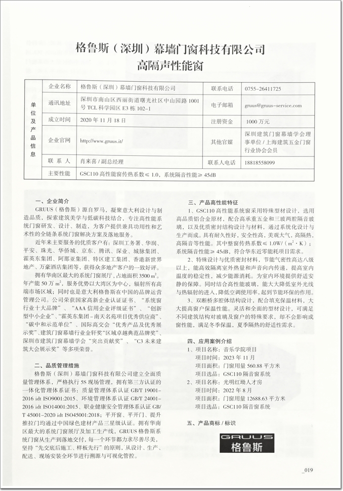 入選《長三角高性能建筑門窗技術及產品推廣目錄》是對格魯斯品牌和產品的高度認可,為此,格魯斯將繼續秉持”綠色建筑,可持續發展”之道,積極響應國家“雙減”政策,起行業示范先行作用。同時持續技術革新,深入了解市場需求,不斷結合各地區的氣候環境特點和生活生產需求,升級和優化系統門窗產品與解決方案,用高質量的建筑空間,提升人居生活品質,助力行業高質量發展。
