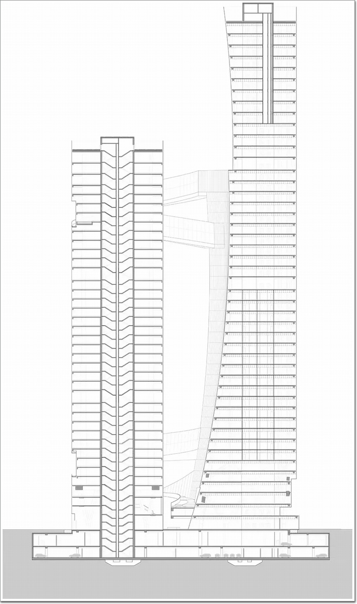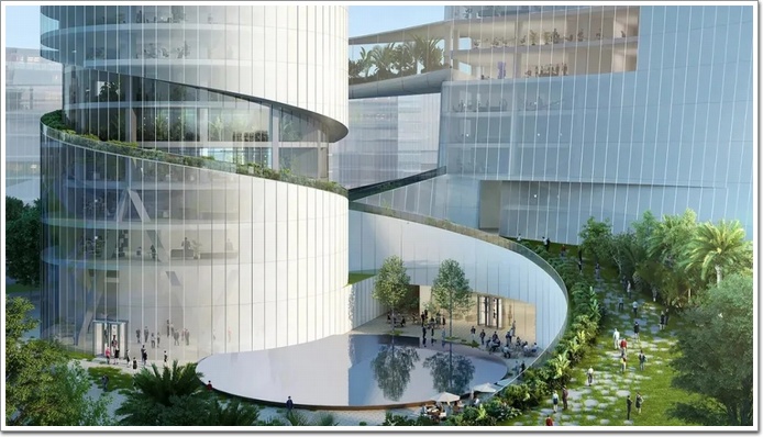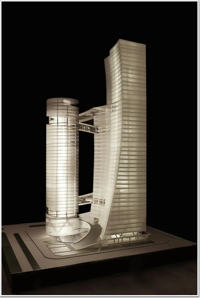 一座為住宅、高150米;一座為寫字樓、高達200米,包含辦公,實驗室和公共接待處。