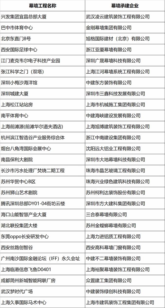 2、篩選幕墻工程企業(yè)中,近一年內(nèi),最具代表性的建成工程案例。
