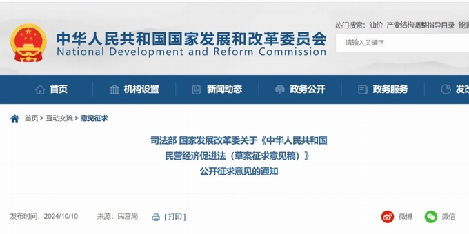 10月10日,司法部、國家發展改革委在門戶網站公布《中華人民共和國民營經濟促進法(草案征求意見稿)》(以下簡稱草案),向社會公開征求意見。