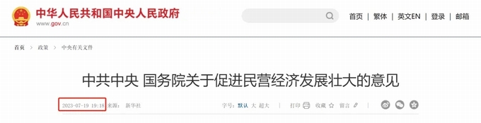 2023年7月,中共中央 國務院發布《關于促進民營經濟發展壯大的意見》,并且發布《中共中央 國務院關于促進民營經濟發展壯大的意見》權威答問。